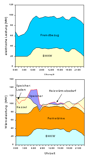 Wärmeerzeuger einschließlich Speicherfahrweise (unten).